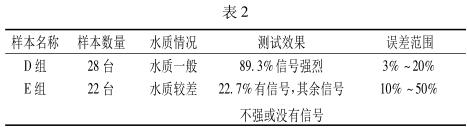 當然除了管徑這一大因素外,污水水質的好壞也是一個影響檢測效果的原因。把受檢的 50 臺流量計所流過的水質分為兩組,水質一般 D 組和水質較差 E 組。整理數據見表 2。