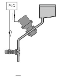 在灌裝系統(tǒng)中用到快速切斷閥(定量閥)來控制灌裝的啟停。快速切斷閥的控制原理:當(dāng)電磁閥接收到PLC的輸出信號(hào)(由PLC采集灌裝流量計(jì)的脈沖信號(hào)后處理的輸出信號(hào))時(shí)開始動(dòng)作,通過執(zhí)行機(jī)構(gòu)帶動(dòng)閥桿和閥芯向上運(yùn)動(dòng),閥芯和閥座分開,流體通過閥座進(jìn)入灌裝管道,開始灌裝,當(dāng)電磁閥接收到PLC輸出信號(hào)關(guān)閉閥門時(shí),閥桿向下運(yùn)動(dòng),帶動(dòng)閥芯向下運(yùn)動(dòng),使閥芯和閥座接觸,從而切斷流體達(dá)到結(jié)束灌裝。本應(yīng)用中控制閥的閥桿在管道中,流體從上向下流經(jīng)整個(gè)閥體,閥桿的動(dòng)作行程分兩級,對應(yīng)于小流量和較大流量。