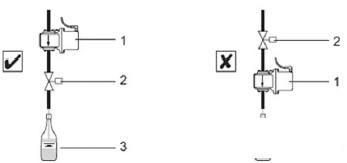 4.2.2 安裝位置。安裝在閥門附近,灌裝流量計(jì)不能安裝在控制閥的下游(圖6),如果裝在控制閥的下游,在一個(gè)灌裝周期結(jié)束后,傳感器的測量管道完全排空,這樣會(huì)嚴(yán)重影響下個(gè)周期的測量。