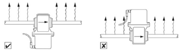 (1)在過熱的條件中使用時(shí)(比如在線清洗和在線消毒),強(qiáng)烈要求變送器裝在下面,這樣可以降低變送器部分過熱的風(fēng)險(xiǎn),如圖8。