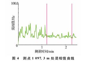 T-××-××1井是大慶油田采油五廠1口水驅產出井,采用阻抗式含水率計在該井進行了測試。圖3、圖4分別為測點深度1097.3m測量的流量及混相值曲線圖。2min的采樣時間內,流量及混相值曲線波動劇烈,明顯受井下產氣影響,進行平均值計算時只能取后半段較平穩的數據,因此,測試時需延長測量時間。錄取不同范圍數值時流量及含水率測量差值較大,流量平穩段為14.81m3/d,高值時達到23.52m3/d;取不同測量段的混相值時測量含水率*大相差12%。重復測量得到了相同的測量結果。由此可見,氣體對流量及含水率測量產生了非常大的測量誤差。