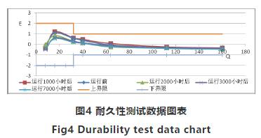 整個耐久性測試以DN80-G100 樣機(jī)為例進(jìn)行說明,*先是將三臺樣機(jī)分別安裝在不同安裝位置的同一管道中,其管道是由0.8 MPa 壓縮氣體為介質(zhì)以樣機(jī)*大流量進(jìn)行循環(huán)運行,以每1 000 h 為運行周期將樣機(jī)拆卸并在標(biāo)準(zhǔn)氣體流量裝置做相應(yīng)性能測試,經(jīng)過7 000 h 運行如圖4 所示。