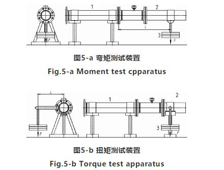對于高壓機(jī)油流量計來說,還應(yīng)當(dāng)詳細(xì)說明流量計所需求的彎曲與扭力力矩的保護(hù)水平。此數(shù)據(jù)是通過試驗直接獲得,彎矩測試裝置如圖5-a 所示,直管段1 連接氣體流量標(biāo)準(zhǔn)裝置,在直管段2 預(yù)先確定的力臂L 位置附加垂直方向的力F 而形成彎矩M;扭矩測試裝置如圖5-b 所示,直管段1 連接氣體流量標(biāo)準(zhǔn)裝置,在直管段2 側(cè)面預(yù)先確定的力臂L 位置附加垂直方向的力F 而形成扭矩T。而彎矩與扭矩均是作用于流量計入口與出口法蘭處。由于此項測試主要針對流量計強度的校核,為了更有說服力、提高可靠性,故將鋁合金殼體的中低壓渦輪流量計DN80-G100用于此次測試。而整個測試過程是將砝碼F 按EN12261 表10 中要求1 倍、2 倍直至做到4 倍(即力矩為3 040 N·m),未發(fā)現(xiàn)流量計殼體有任何異常變化。而測試結(jié)果表明在施加砝碼F 之前、過后得到的指示誤差與施加砝碼F 之前的指示誤差未有明顯變化。