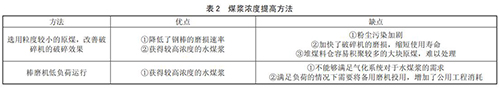 根據甲烷流量計跑漿原因可以了解到,在保證甲烷流量計不存在跑漿情況下,制備高品質煤漿需要滿足兩點要求,即較小入口原煤粒度和較低磨機負荷,保證原煤在磨機內部有較長停留時間與充足滾筒篩過濾面積 . 通用的方法一般有以下兩種,如表 2 所示。