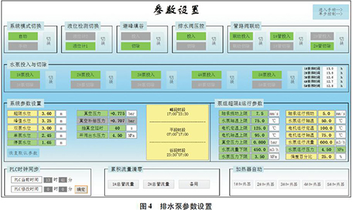 在 PLC 程序里設(shè)定水泵開(kāi)動(dòng)臺(tái)時(shí)累計(jì)功能、移峰填谷、效率優(yōu)先等子程序,通過(guò)子程序來(lái)控制排水泵運(yùn)行,從而實(shí)現(xiàn)降本增效、節(jié)能降耗。見(jiàn)圖 4。