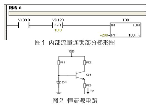 (2)PLC及模塊。PLC及模塊是自動化控制系統(tǒng)主要設(shè)備,且PLC及模塊屬于高集成高精密電子設(shè)備,保持室內(nèi)整潔舒適,可以提高自動化系統(tǒng)運行穩(wěn)定性。PLC及模塊硬件運行可靠,內(nèi)部控制程序是其控制核心軟件,如PLC硬件出現(xiàn)故障或損壞一般直接更換,但原內(nèi)部控制軟件無法上傳,整個控制系統(tǒng)成失控狀態(tài)。所以其內(nèi)部控制程序在調(diào)試驗收合格后應(yīng)及時備份并做好標記,為以后修復(fù)PLC故障提供保障。PLC系統(tǒng)的維護技術(shù)人員需掌握一定基礎(chǔ)PLC控制邏輯原理,對準確判斷PLC故障點有很大的幫助。例如選礦廠水泵房S7-200系列PLC自動抽水系統(tǒng)出現(xiàn)如下故障 :觸摸屏能控制變頻器啟動水泵抽水,但在短時間內(nèi)會自動停泵,導(dǎo)致無法正常抽水。通過故障現(xiàn)象可初步判斷PLC及模塊硬件設(shè)備正常,主要由于某個變量有問題導(dǎo)致連鎖停機。打開備份PLC控制梯形圖程序進行相關(guān)分析,原來是高溫液體流量計瞬時流量數(shù)值做了連鎖,其在一定時間內(nèi)瞬時流量不大于10m 3 /h時,自動停泵,電磁流量模擬量輸出電流值僅為4ma且無變化,確定高溫液體流量計有故障。可臨時應(yīng)急維修,模擬量模塊輸入模擬電流值10ma~20ma之間一固定數(shù)值即可恢復(fù)正常運行。制作簡單恒流源電路代替高溫液體流量計輸出的模擬電流量,實現(xiàn)解決水泵無法正常運行的故障。