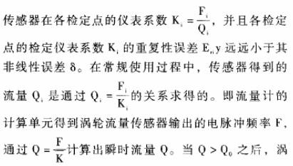 對于重復性很好而線性度較差的渦輪流量傳感器,要擴大其測量范圍或減小測量誤差,研究的核心問題是設計一-種便捷的使用方法,按照行鑒定規(guī)程利用原有檢定數據,使渦輪流量傳感器在具有很小重復性誤差的流量范圍內,都能得到很準確測量效果。
