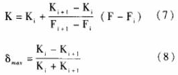 輪流量傳感器的儀表系數K與Q的關系近似線性的單調函數(見圖2)。因此,在對檢定結果進行處理時,直接將各檢定點的檢定結果以Fi、Ki的形式存入二甲苯流量計的數值運算部分,不必對其儀表系數取平均值。在使用渦輪流量傳感器進行流量測量時,根據渦輪流量傳感器的信號頻率F,即可在以上檢定結果中檢索各F,值,找出滿足F,≤F≤F的Fi、Fi+1(i=1,2,.,.n-1),n是該渦輪流量傳感器的流量檢定點數;若信號頻率F=Fi或F=Fi+1,則相應的Ki或K.i+1即為所需的儀表系數;若信號頻率Fi