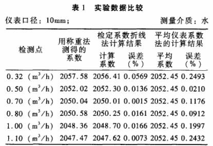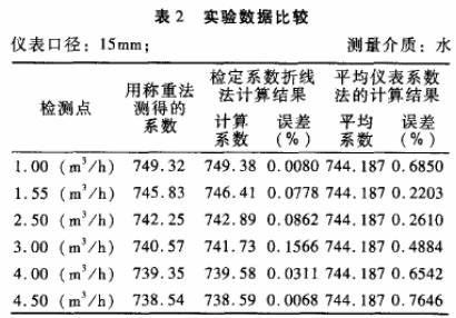 被檢儀表:公稱通徑分別為10mm和15mm的渦輪流量傳感器各一臺;檢定裝置:靜態(tài)稱重法標準水流量檢定裝置,系統(tǒng)精度+0.2%。分別采用常規(guī)的平均儀表系數法和檢定系數折線法進行標.定,并與作為標準的靜態(tài)稱重法的檢定結果進行比對,結果見表1.表2。