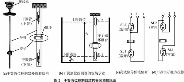 常用的控制器(傳感器)有干簧管式、電接點(diǎn)壓力表式、晶體管電路式和球形液位控制器等。本文介紹干簧管液位控制電路。