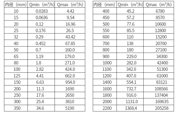 污泥流量計的流量范圍是比較寬的,一般可以在0.5-10m/s之間選擇。一般情況下,上限流速在原理上是不受限制的,然而通常我們建議不超過 5m/s ,除非襯里材料能承受液流沖刷,實際應用很少超過 7m/s, 超過 10 m/s 則更為罕見。滿度流量的流速下限一般為 1m/s ,有些型號儀表為 0.5m/s。有些新建工程運行初期流量偏低或在流速偏低的時候運行,從測量精度角度考慮,儀表管徑應改用小的管徑,以異徑管連接之。 用于有粘附、沉積、結垢等物質的流體,選用流速應不低于 2m/ s ,*好提高到 3 -4m/s 或以上,起到自清掃 防止粘附沉積等作用。用于礦漿等磨耗性強的流體,常用流速應低于 2~3m/s, 以降低對襯里和電極的磨損。在測量接近閾值的低電導率液體,盡可能選定較低流速(小于 0.5~1m/s ) , 因為流速提高,流動噪聲會增加,而出現輸出晃動現象。